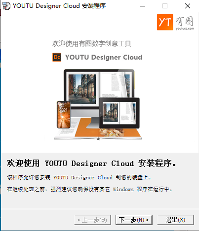 下载完成以后桌面上有了youtu.exe的图标,双击该图标开始进行有图全媒体设计云平台安装