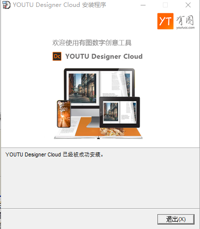 安装完成以后,出现系统提示界面,点击“退出”。系统会默认启动有图全媒体